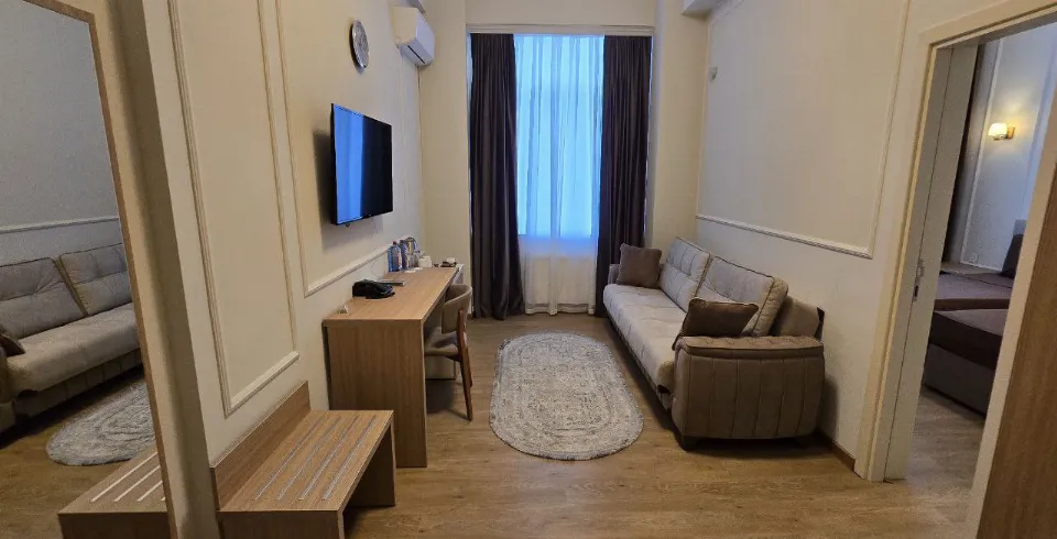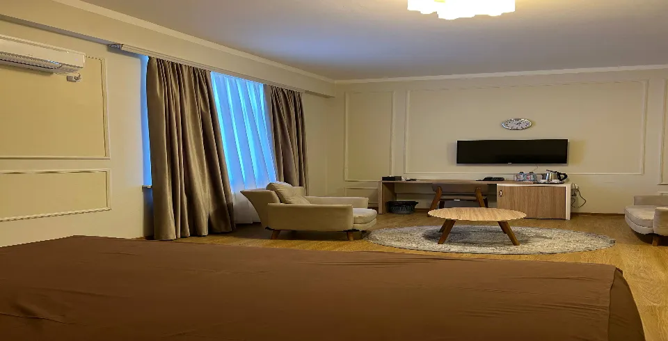 Deluxe Suite в Санаторий Парк Нафталан — это просторный и элегантный номер площадью 42 м², предназначенный для гостей, ценящих высокий уровень комфорта. Продуманная планировка и современное оснащение создают идеальные условия для отдыха и оздоровления.
